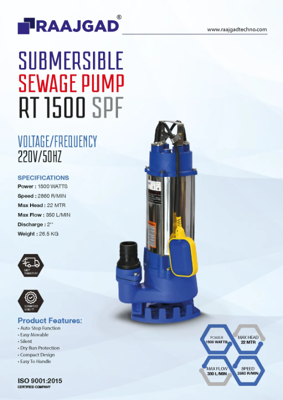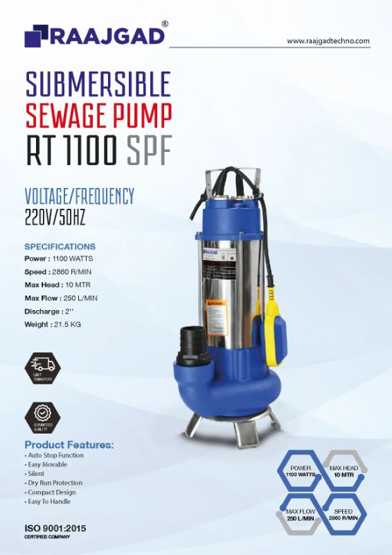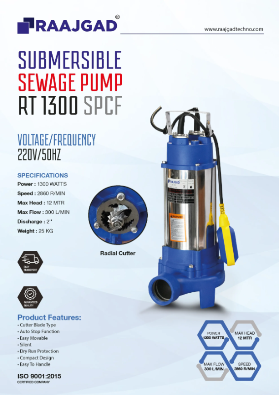 With the best quality of submersible sewage pumps in pune, Raajgad Pumps offers all sewage pumping solutions. We have over 24 years of expertise and in-depth knowledge of local needs and advanced pump technology. By choosing us, you gain guidance to select the right pump through our technicians and full-time support from installation to maintenance.